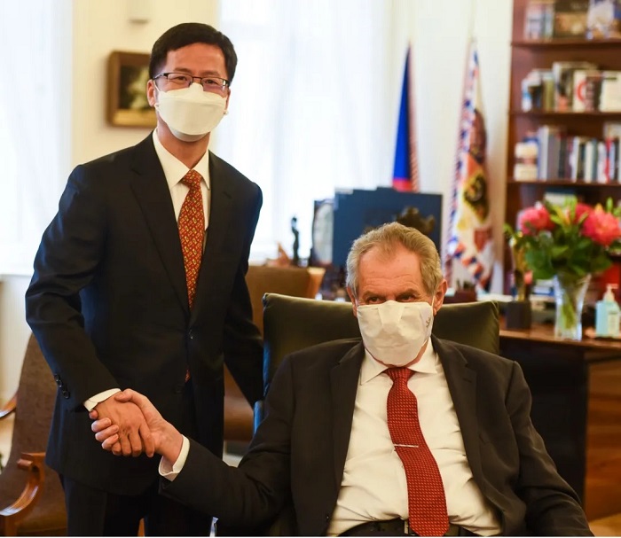 2022年2月9日,驻捷克大使张建敏辞行拜会捷克总统泽曼。中国驻捷克大使馆官网 图
