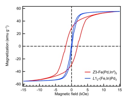 图4。L12-(Fe,In) Pd3和 Z3-Fe (Pd,Ind)3NPs 的磁性。Z3型 NPs (Pd/In = 83/17 at。%)及 L12型 NPs (pd/in = 89/11 at。用 vsm 法在室温条件下测定。