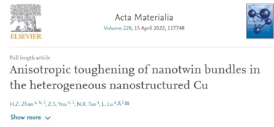 发现异质纳米结构铜中纳米孪晶束的各向异性增韧效应!