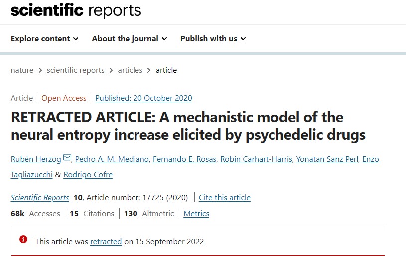 通知还透露了撤稿后续动态:作者目前正在进行的修正研究中,包括兴奋池和抑制池中5HT2A受体的激活,并测试它是否再现了熵的增加。